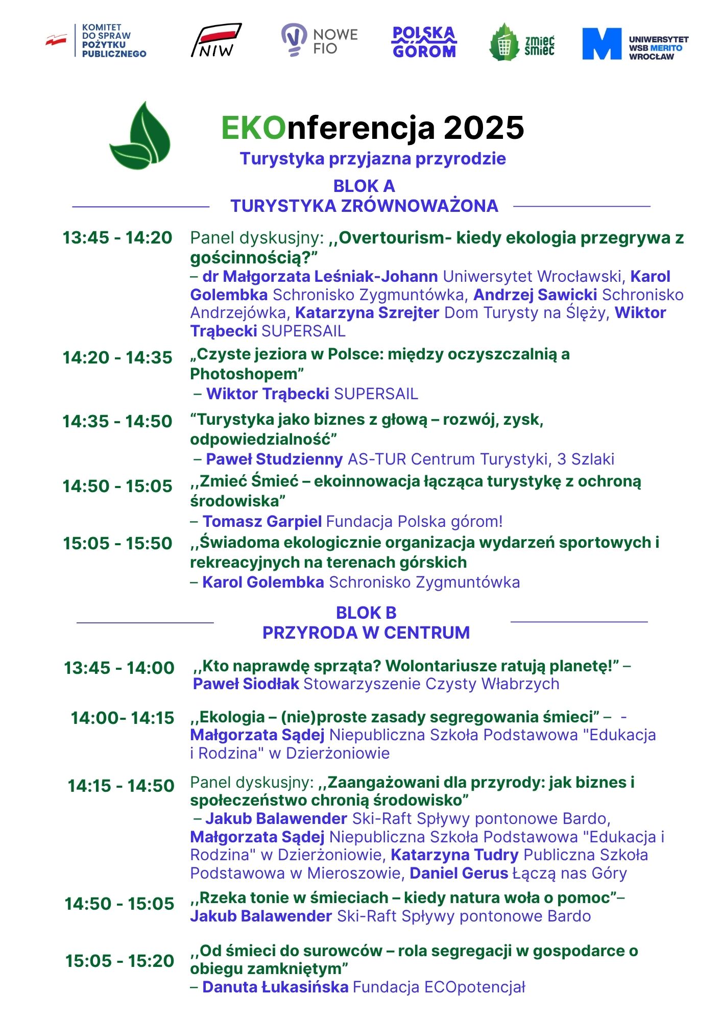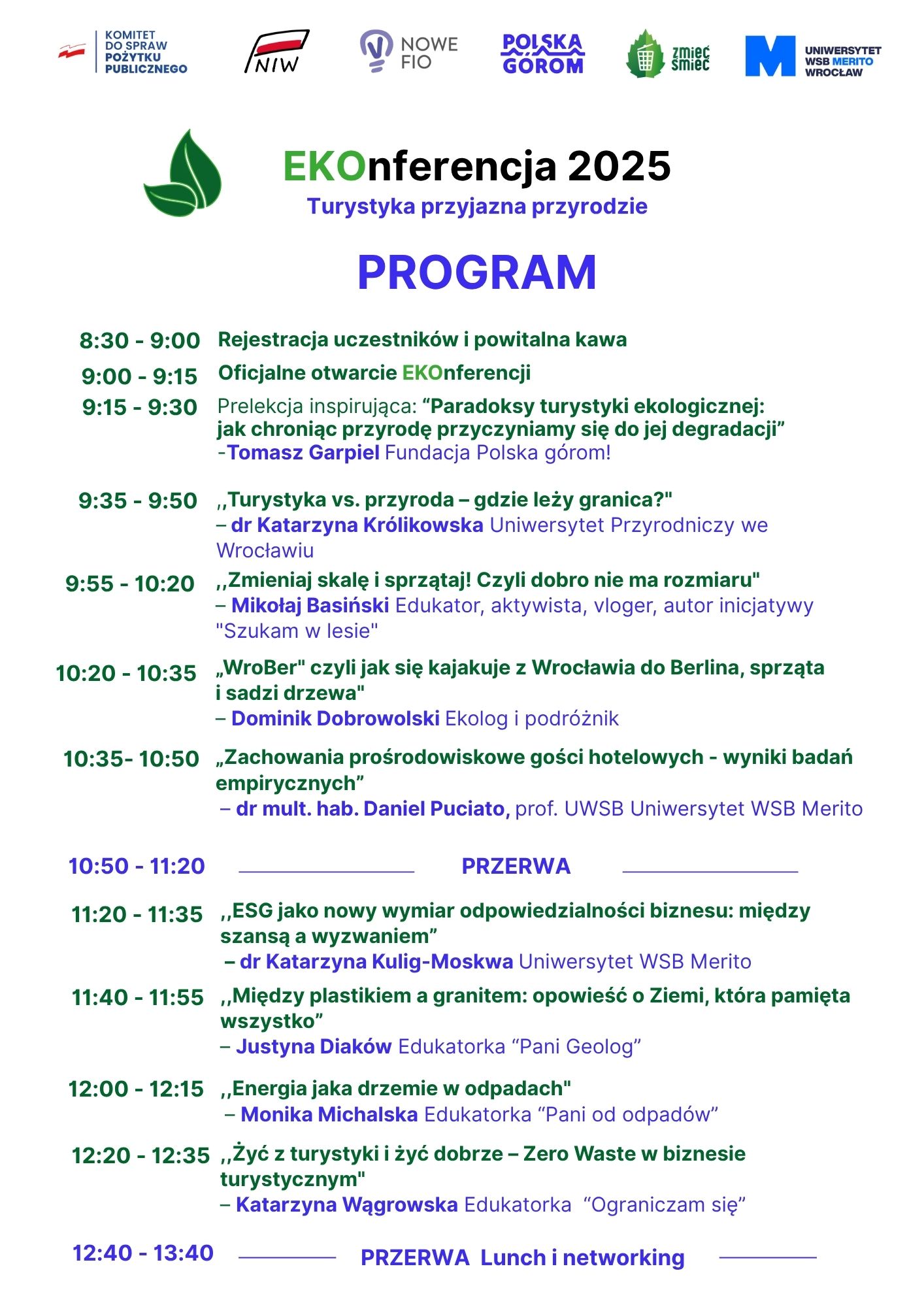 - Inspirujące prelekcje i panele z liderami ochrony środowiska i turystyki, w których udział biorą zarówno naukowcy, jak i doświadczeni praktycy dzielący się wiedzą i najlepszymi praktykami.