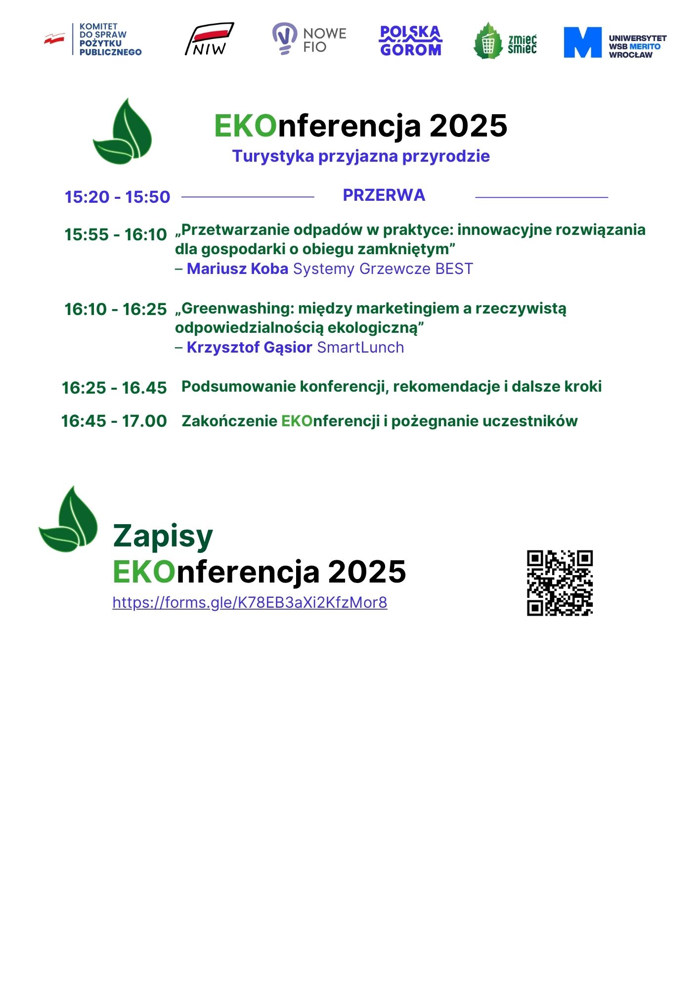 - Wyjątkowe dyskusje o realnych wyzwaniach i szansach, eksperckie materiały, które możesz od razu wykorzystać w praktyce, aby stać się inicjatorem ekologicznych zmian,